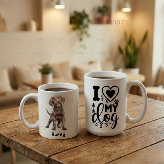 Love My Dog Personalized Photo Mug – Custom Pet Illustration Ceramic Gift