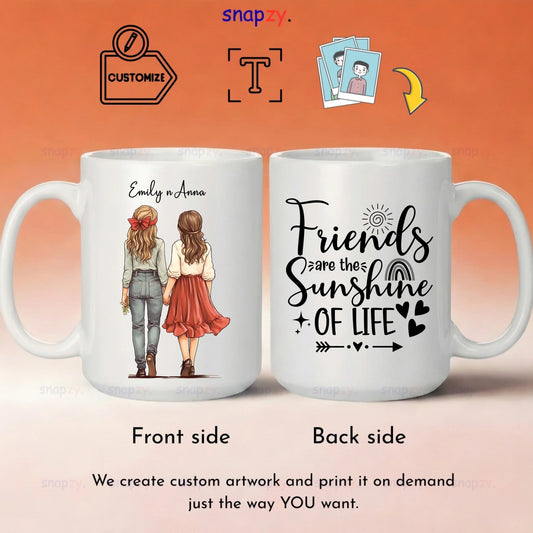 Custom Friendship Mug – Personalized Photo & Text Ceramic Mug – Whimsical Illustration Gift