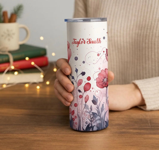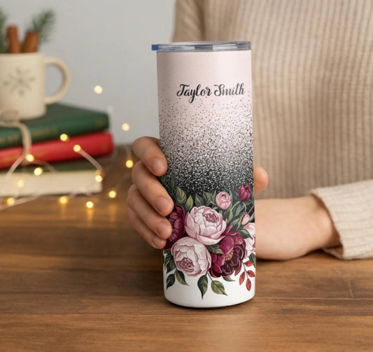 Personalized Floral Birthday Tumbler - Elegant Custom Name Gift