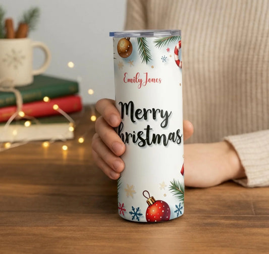 Personalized Festive Christmas Insulated Tumbler with Candy Canes & Ornaments
