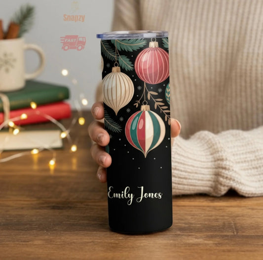Personalized Christmas Tumbler with Ornaments – Durable Stainless Steel 20oz