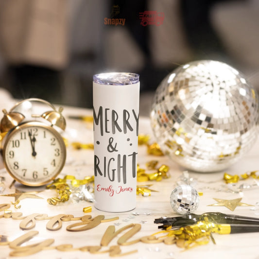 Personalized Snowman Merry & Bright Insulated Tumbler - Festive Holiday Gift