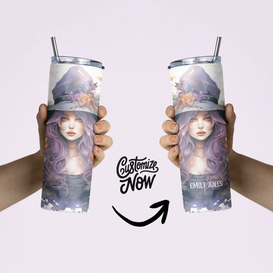 Whimsical Witch 20oz Skinny Tumbler - Custom Name Halloween Tumbler