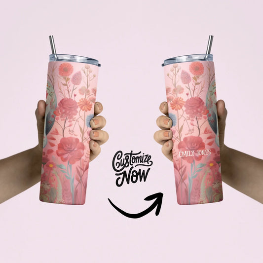 Dreamy Floral 20oz Slim Tumbler - Custom Name Halloween Tumbler