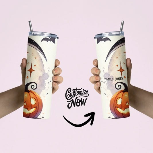 Cute Spooky Halloween 20oz Skinny Tumbler Custom Name