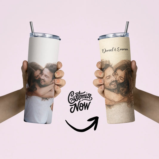 Custom Name Romantic Watercolor Couple Portrait Tumbler 20oz