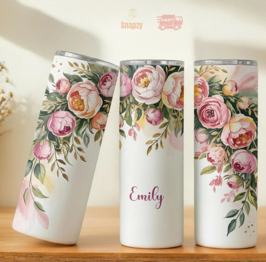 Elegant Floral 20oz Tumbler - Custom Name Option