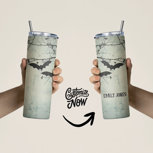 Bats Personalized 20oz Skinny Tumbler – Halloween Cup – Custom Name