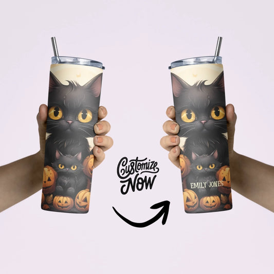 Cat Personalized 20oz Skinny Tumbler – Halloween Cup – Custom Name
