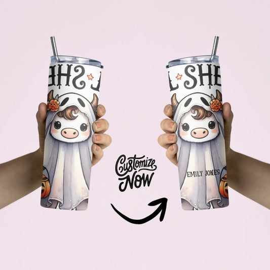 Cute Spooky Halloween 20oz Skinny Tumbler Custom Name