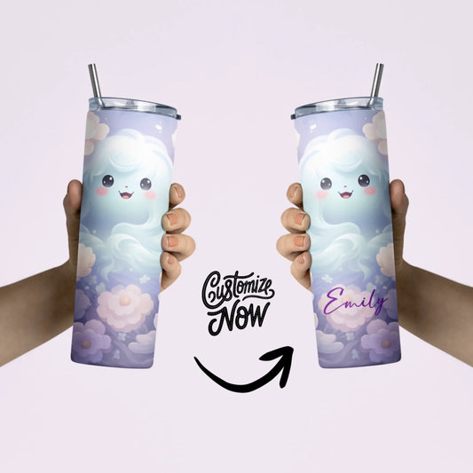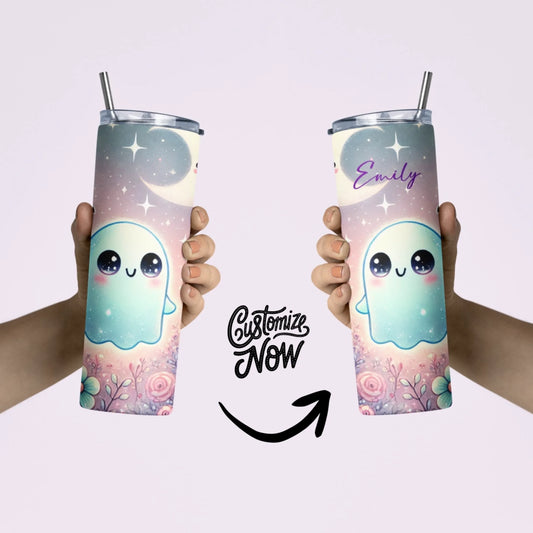 Ghosts Personalized 20oz Skinny Tumbler – Halloween Cup – Custom Name