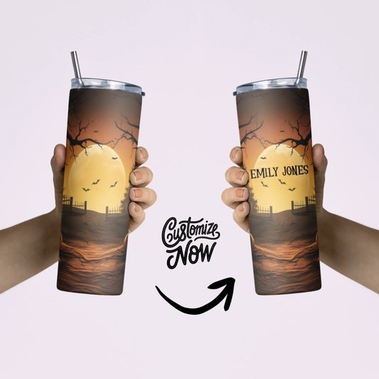Spooky Halloween 20oz Skinny Tumbler with Custom Name