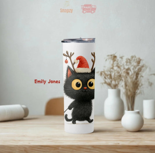 Holiday Cat Tumbler, Personalized for Cat Lovers